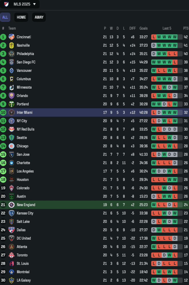 หลังจบศึกสโมสรโลกแบบไม่ประสบความสำเร็จ ตอนนี้กลับมาโหดในลีกอีกครั้ง บุกถล่มมอนเทรอัล 4-1 ในเกมล่าสุด ทำให้ 3 นัดลีกหลังสุดชนะรวด ยิงรวม 13 ลูก ฟอร์มเกมเยือนในลีกก็ไม่ธรรมดา ชนะ 4 จาก 8 เกม เสมอ 3 และแพ้แค่ครั้งเดียว