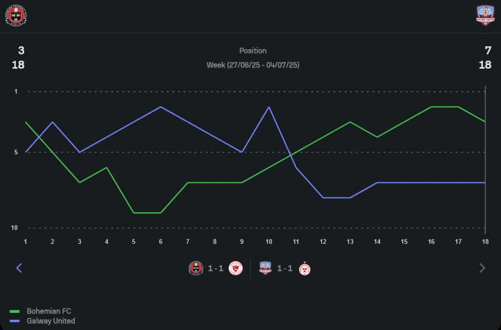 ย้อนดูสถิติการพบกัน 10 เกมหลังสุด โบฮีเมี่ยนส์ ข่มอยู่เล็กน้อย โดยเก็บชัยได้ถึง 6 นัด เสมอ 3 และกัลเวย์ ยูไนเต็ดชนะเพียงครั้งเดียว แม้ฤดูกาลนี้พวกเขาแลกหมัดกันสูสี แต่โบฮีเมี่ยนส์มักเล่นได้ดีเวลาเจอกันในบ้าน สถิติเหล่านี้เป็นหนึ่งในเหตุผลที่หลายสาย ทีเด็ดบอล มองไปทางฝั่งเจ้าบ้านมากกว่าในเกมนี้