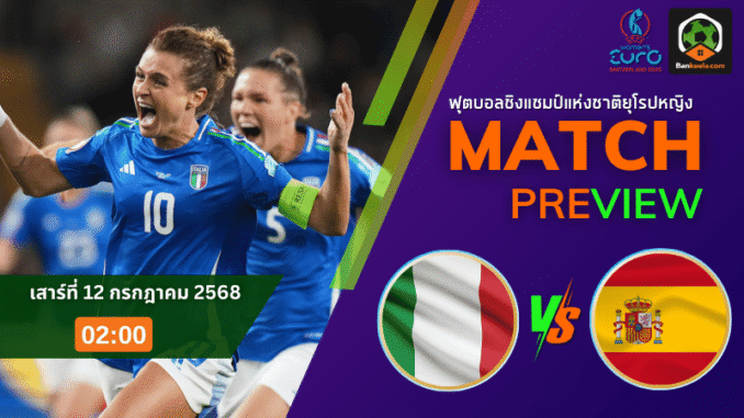 คืนนี้แฟนบอลห้ามพลาดเด็ดขาด เมื่อศึกฟุตบอลหญิงชิงแชมป์แห่งชาติยุโรป กลุ่ม B เดินทางมาถึงนัดชี้ชะตา อิตาลีหญิง อันดับ 2 ของกลุ่ม จะลงสนามพบกับ สเปนหญิง ที่เข้ารอบไปแล้วในฐานะจ่าฝูง แต่ยังต้องการชัยชนะเพื่อการันตีแชมป์กลุ่มแบบสง่างาม เกมนี้เตะเวลา 02:00 น. ตามเวลาประเทศไทย ราคาบอลวันนี้ เปิดมาที่สเปนหญิงเป็นต่อหนึ่งช่วงตัว ท่ามกลางความกดดันที่ทั้งสองทีมต่างมีเป้าหมายบน ตารางบอลวันนี้ ที่ยังเดิมพันสูงทุกวินาที