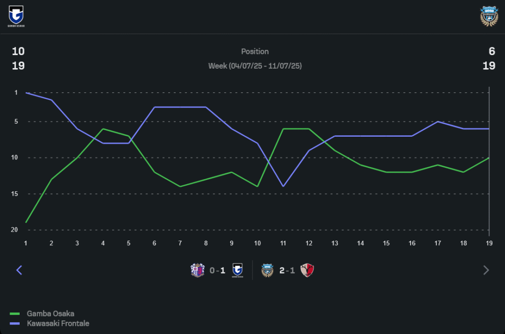 หากดูย้อนหลังในแง่สถิติ ต้องบอกว่าคู่นี้คือคู่กัดแห่งเจลีกก็ว่าได้ เพราะใน 10 นัดหลังสุดผลัดกันแพ้ชนะอย่างสนุก ผลลัพธ์ออกได้ทุกหน้า แม้ฝั่ง ทีเด็ดบอล จะชี้ว่าฟรอนตาเล่เคยกดโอซาก้าไปหลายครั้ง แต่ในช่วงหลังเจ้าถิ่นกลับมามีทีเด็ดเฉือนชนะได้บ่อยขึ้น ที่น่าสนใจคือ 2 จาก 3 ครั้งล่าสุดเป็นกัมบะที่ซัดชัยคารังฟรอนตาเล่ด้วยสกอร์สวยๆ สะท้อนให้เห็นว่าพวกเขาไม่เคยกลัวแม้ต้องเจอทีมใหญ่อย่างคาวาซากิ