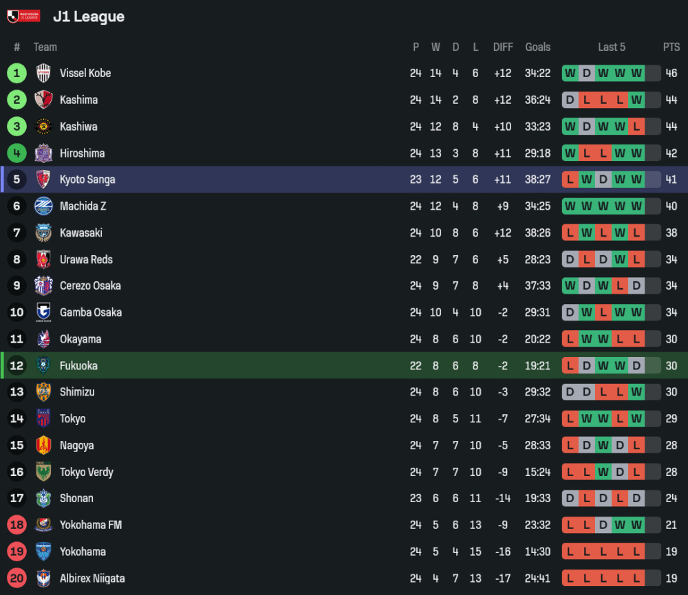 ผลงาน 5 นัดหลังสุดถือว่าไม่ขี้เหร่ เมื่อเก็บชัยได้ถึง 3 และเสมออีก 2 เกม จุดเด่นอยู่ที่เกมรับเหนียวแน่น เสียประตูยากโดยเฉพาะในบ้าน ล่าสุดเสมอกับ กิราวานซ์ คิตะคิวชู แบบไร้สกอร์ก่อนชนะจุดโทษในบอลถ้วย ความมั่นใจกลับมาเต็มเปี่ยม