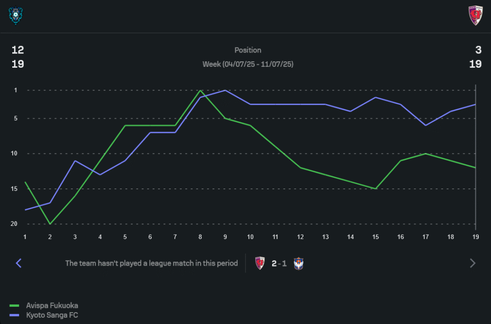 ย้อนไปดูสถิติการเจอกัน 10 ครั้งหลังสุด ต้องบอกว่าเจอกันทีไรบู๊ล้างผลาญทุกที และที่สำคัญผลัดกันแพ้ชนะตลอดไม่มีใครข่มใครชัดเจน ฝั่ง อวิสปา ฟูกูโอกะ เก็บชัยได้ถึง 6 ครั้ง ส่วน เกียวโต ซังงะ กวาดไป 3 และเสมอกันเพียง 1 เกม เรียกว่าเจอทีมนี้ทีไรใส่กันยับ เกมนี้สำหรับสาย ทีเด็ดบอล จึงถือว่าเป็นอีกหนึ่งเกมที่ท้าทายต่อการวิเคราะห์ไม่น้อย