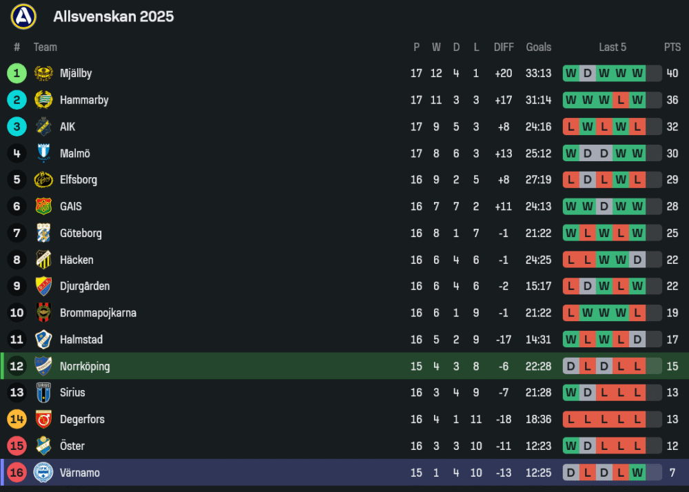 - สกอร์ที่คาด: นอร์โคปิ้ง ชนะ 1-0