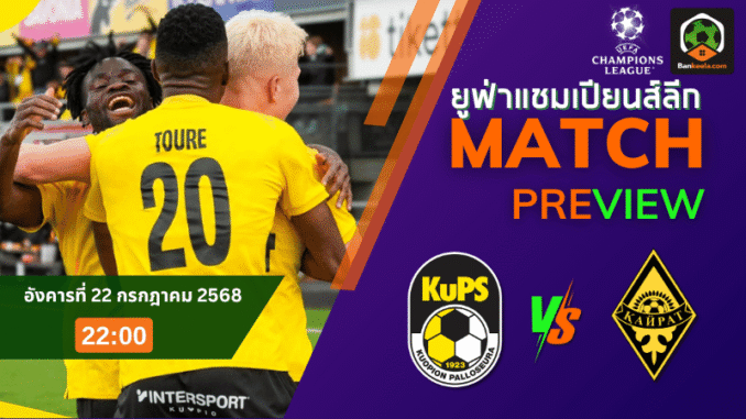 ค่ำคืนวันอังคารที่ 22 กรกฎาคม 2568 เวลา 22:00 น. ฟุตบอล ยูฟ่า แชมเปียนส์ลีก รอบคัดเลือกรอบสอง เลกแรก ระเบิดศึกที่ วาเร่ อารีน่า เมื่อเจ้าบ้าน คูพีเอส จากฟินแลนด์ พร้อมลุยเต็มกำลังรับการมาเยือนของ เอฟซี ไครัต อัลมาตี้ จากคาซัคสถาน ในเกมที่ราคาบอลวันนี้ขยับไปฝั่งเจ้าถิ่นเล็กน้อยอยู่ที่ “ต่อ +10” บอกเลยว่าเดือดแน่ เพราะทั้งสองทีมต่างหมายมั่นเก็บความได้เปรียบในเลกแรกเพื่อตุนสกอร์ก่อนกลับไปเยือน ด้วย ตารางบอลวันนี้ ที่มีหลายคู่ให้เลือก แต่คู่นี้ถือเป็นอีกเกมที่ห้ามพลาด เพราะศักดิ์ศรีในถ้วยใหญ่ยุโรปเดิมพันสูงลิ่ว!