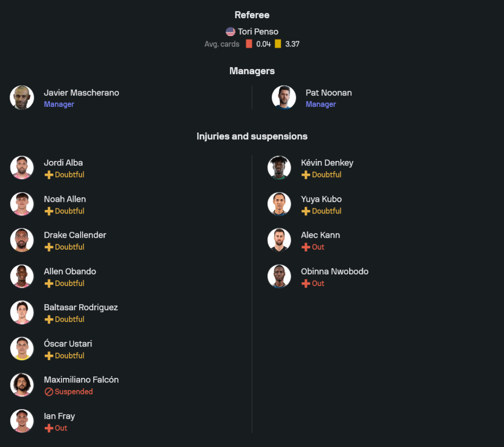 อินเตอร์ ไมอามี่: ผ่านมาแล้ว 5 เกมล่าสุดในลีก พวกเขาชนะถึง 4 นัด ยิงกระหน่ำรวม 16 ประตู ฟอร์มในบ้านก็ไม่ธรรมดา ชนะ 3 นัดรวด ยิงรวม 11 ประตู เกมรุกคมจัดจ้านเหมือนมีดโกน ใครหลุดแม้ครึ่งวินาทีอาจเจ็บได้