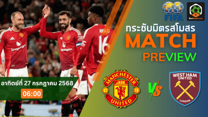 เตรียมระเบิดความมันก่อนฟ้าสาง! ศึกฟุตบอล กระชับมิตรสโมสร คู่เดือดระหว่างสองทีมร่วมพรีเมียร์ลีก อังกฤษ อย่าง แมนเชสเตอร์ ยูไนเต็ด และ เวสต์แฮม ยูไนเต็ด จะระเบิดศึกกันในเช้าวันอาทิตย์ที่ 27 กรกฎาคม 2568 เวลา 06:00 น. ตามเวลาประเทศไทย แม้จะไม่ใช่เกมที่มีแต้มให้ไล่ล่า แต่ด้วยความเป็นศักดิ์ศรีของทีมใหญ่ในอังกฤษ และเงื่อนไขการเตรียมทีมก่อนเปิดฤดูกาล ทำให้เกมนี้มีอะไรให้ลุ้นมากกว่าแค่ชื่อ “อุ่นเครื่อง”