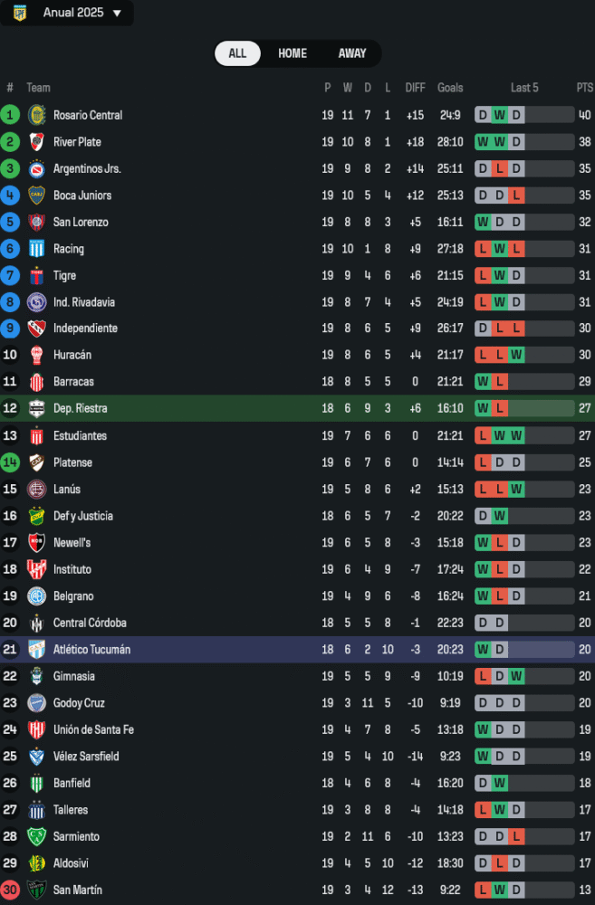ศึก อาร์เจนติน่า พรีเมียร์ดิวิชั่น คืนวันอังคารที่ 29 กรกฎาคม 2568 เวลา 02:00 น. ตามเวลาประเทศไทย เตรียมลุกเป็นไฟเมื่อ เดปอร์ติโว่ ริเอสตร้า ทีมอันดับ 7 ของตาราง เปิดรัง เอสตาดิโอ กิเยร์โม่ ลาซ่า รับการมาเยือนของรองจ่าฝูงฟอร์มแรง แอตเลติโก ทูคูมัน ในเกมที่ต่างฝ่ายต่างมีเป้าหมายใหญ่ฝังอยู่ในหัวใจ โดยเรตราคาบอลล่าสุดเปิดออกมาแบบใส่กันตรง ๆ ว่า ริเอสตร้า เป็นฝ่ายต่อ “เสมอ +10” ซึ่งถือว่าสูสีไม่น้อย สอดคล้องกับผลงานทั้งคู่ในช่วงที่ผ่านมา และเป็นหนึ่งในแมตช์ที่น่าจับตาใน ตารางบอลวันนี้ แบบยิ่งห้ามกระพริบตา!