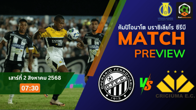 ในศึกฟุตบอล คัมปิโอนาโต บราซิเลียโร ซีรีบี ค่ำคืนวันที่ 2 สิงหาคม 2568 นี้ ความมันระดับแซมบ้ากำลังจะปะทุขึ้นอีกครั้ง เมื่อ โอเปราริโอ แฟร์โรวิอาริโอ พีอาร์ ทีมแกร่งแห่งภาคใต้ เตรียมเปิดสนาม เอสตาดิโอ เกอร์มาโน่ ครูเกอร์ รับมือทีมเยือนฟอร์มดุอย่าง คริซูม่า ที่บุกมาพร้อมแรงเชียร์และความมั่นใจเต็มเปี่ยม โดยเกมนี้ ราคาบอลวันนี้ เปิดมาในเรต “เสมอ” บอกได้เลยว่าไม่มีใครยอมใครแน่นอน แถมแมตช์นี้ยังอยู่ในลิสต์ ตารางบอลวันนี้ ที่ห้ามพลาดของเหล่านักลงทุนลูกหนัง
