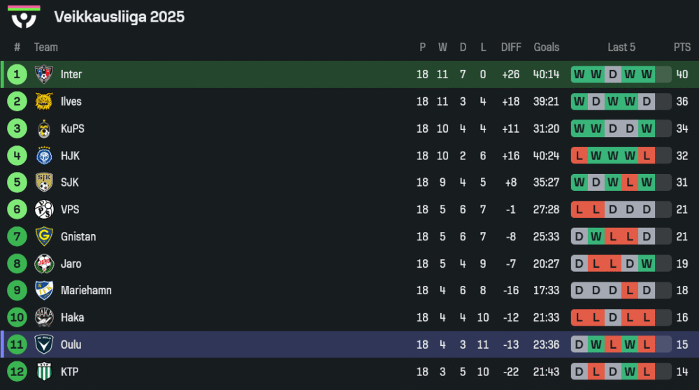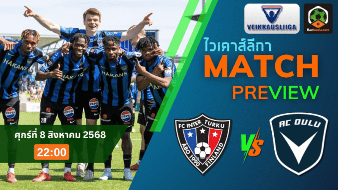 ฟุตบอลลีกสูงสุดของฟินแลนด์เดินทางมาถึงโค้งสำคัญของฤดูกาล และค่ำคืนนี้ วันศุกร์ที่ 8 สิงหาคม 2568 เวลา 22:00 น. ศึกไวเคาส์ลีกา จะระเบิดขึ้นที่ เวริตาส สตาดิโอน เมื่อจ่าฝูงฟอร์มฮอตอย่าง อินเตอร์ ตูร์คู เปิดบ้านรับการมาเยือนของทีมรองบ๊วยอย่าง เอซี โอลู โดยเกมนี้เจ้าถิ่นหวังคว้าชัยต่อเนื่องเพื่อฉีกหนีทีมตามอันดับสองให้ไกลยิ่งขึ้น