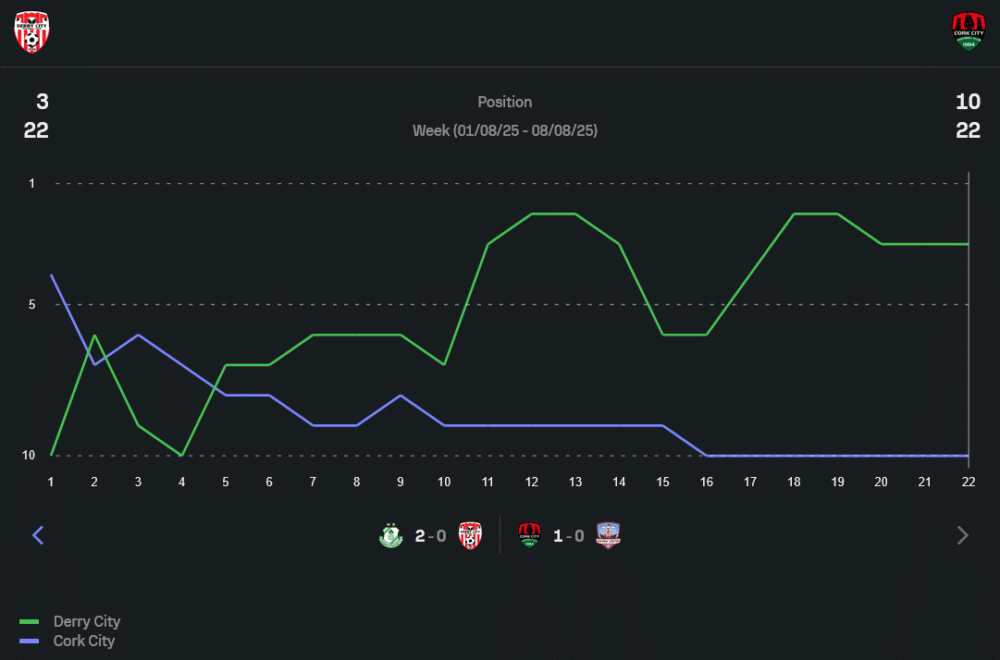 ศึกใหญ่บนเวที ไอร์แลนด์ พรีเมียร์ ลิก คืนวันศุกร์ที่ 9 สิงหาคมนี้ มีคิวดวลเดือดระหว่าง เดอร์รี่ ซิตี้ ทีมอันดับ 3 ที่พร้อมเปิดรังไล่บด คอร์ก ซิตี้ อันดับ 10 ของตาราง โดยเกมนี้จะฟาดแข้งกันที่ เดอะ ไรอัน แม็กไบรด์ แบรนดี้เวลล์ สเตเดี้ยม เวลา 01:15 น. ตามเวลาประเทศไทย สำหรับเรตราคา “เดอร์รี่ ซิตี้ ต่อ 1.25(-10)” ถือว่าน่าจับตาอย่างยิ่งสำหรับคอบอลที่ตามล่ากำไรจาก ราคาบอลวันนี้ ที่ร้อนแรงยิ่งกว่าไฟนรก