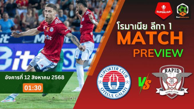 ศึก โรมาเนีย ลีกา 1 ค่ำคืนวันอังคารที่ 12 สิงหาคม 2568 เวลา 01:30 น. ตามโปรแกรม ตารางบอลวันนี้ แฟนบอลเตรียมพบกับเกมเดือดที่สนาม สตาดิโอนุล โอเตลุล เมื่อ โอเตลุล กาลาติ ทีมอันดับ 10 จะเปิดบ้านรับการมาเยือนของ ราปิด บูคาเรสต์ รองจ่าฝูงที่ฟอร์มกำลังร้อนแรงเต็มพิกัด ราคาบอลเปิดให้ราปิดต่อ ปป-10 ซึ่งบ่งบอกชัดว่าผู้มาเยือนยังเหนือกว่าทั้งศักยภาพและผลงาน