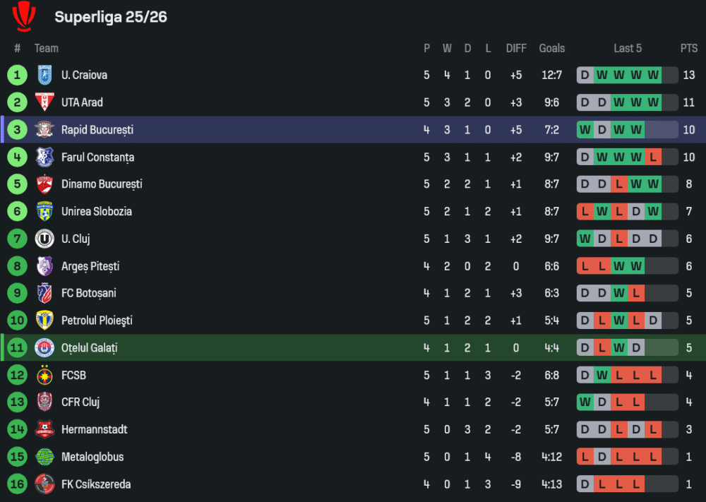 ราปิด บูคาเรสต์ บุกล่าชัย! โอเตลุล กาลาติ หวังยืดสถิติไร้พ่ายในบ้าน