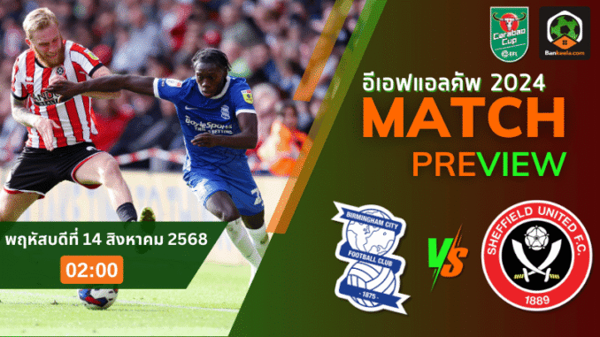 ค่ำคืนวันพฤหัสบดีที่ 14 สิงหาคม 2568 เวลา 02.00 น. แฟนบอลเมืองผู้ดีเตรียมลุ้นมันส์ในศึก อีเอฟแอลคัพ รอบแรก เมื่อ เบอร์มิงแฮม ซิตี้ ทีมแกร่งจากแชมเปี้ยนชิพ เปิดบ้านต้อนรับการมาเยือนของ เชฟฟิลด์ ยูไนเต็ด เพื่อนร่วมลีก เกมนี้นอกจากศักดิ์ศรีแล้วยังเป็นบทพิสูจน์ความพร้อมของทั้งสองฝั่ง ราคาบอลเปิดมาให้เจ้าถิ่นต่อ ปป ลบห้า ซึ่งเมื่อมองจากฟอร์มล่าสุดและข้อมูลจาก ตารางบอลวันนี้ คู่นี้มีโอกาสสู้กันสนุกและมีดราม่าให้ลุ้นแน่นอน