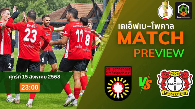 ค่ำคืนวันศุกร์ที่ 15 สิงหาคม 2568 ศึก เดเอฟเบ โพคาล เยอรมนี เปิดฉากรอบแรกอย่างเป็นทางการ คู่ที่น่าสนใจไม่อาจมองข้ามได้คือการพบกันระหว่าง เอสจี ซอนเน็นฮอฟ กรอสซาสปาส ทีมจากระดับ เรจิโอนัลลีก้า ที่จะเปิดบ้านต้อนรับ ไบเออร์ เลเวอร์คูเซ่น ยอดทีมจากบุนเดสลีก้า โดยเกมนี้จะฟาดแข้งกันที่สนาม เวียมาเช่นดรั๊ค อารีน่า เวลา 23:00 น. ตามเวลาประเทศไทย