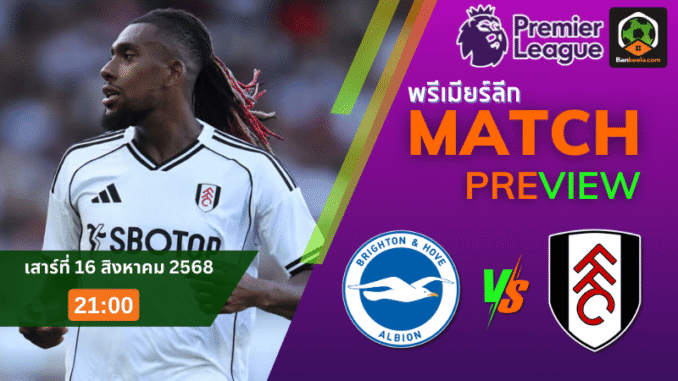 ค่ำคืนวันเสาร์ที่ 16 สิงหาคม 2568 เวลา 21:00 น. ที่สนามเอเม็กซ์ สเตเดี้ยม ศึกพรีเมียร์ลีกจะระเบิดความมันส์เมื่อ ไบรท์ตัน โฮฟ อัลเบี้ยน เปิดบ้านรับการมาเยือนของ ฟูแล่ม สองทีมที่ต่างมีเป้าหมายชัดเจน เกมนี้นอกจากความเข้มข้นในสนามแล้ว ยังถือว่าเป็นอีกหนึ่งแมตช์ที่นักลงทุนและแฟนบอลต้องจดไว้ใน ตารางบอลวันนี้ เพราะราคาบอลเปิดมาให้เจ้าบ้าน ไบรท์ตัน เป็นต่ออยู่ที่ 0.5 หรือครึ่งลูก ซึ่งสะท้อนความได้เปรียบเล็กน้อยในรังเหย้า
