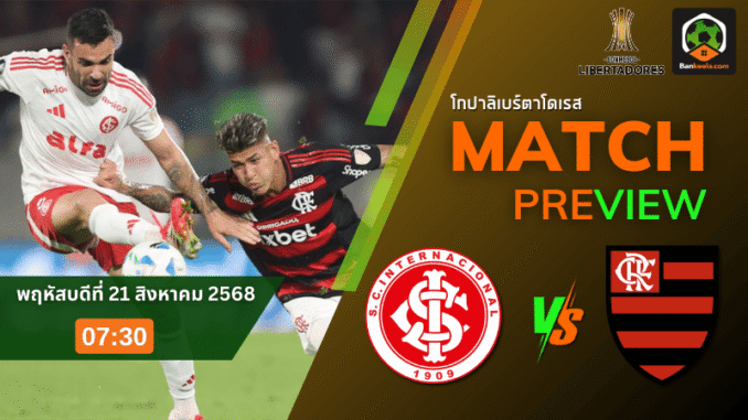 เกมใหญ่แห่งทวีปอเมริกาใต้ในศึก โกปา ลิเบร์ตาโดเรส รอบน็อกเอาต์กำลังเดือดทะลุปรอท เมื่อ อินเตอร์นาซิอองนาล อาร์เอส ทีมดังจากแดนเซเลเซา เตรียมเปิดบ้านรับการมาเยือนของ ฟลาเมงโก้ ยักษ์ใหญ่แห่งบราซิลที่กำลังฟอร์มแรงสุด ๆ คืนวันพฤหัสบดีที่ 21 สิงหาคม 2568 เวลา 07:30 น. ตามเวลาไทย ถือเป็นแมตช์ที่คอบอลต้องห้ามพลาด เพราะนอกจากเกียรติยศบนเวทียุโรปของละตินแล้ว ราคาบอลวันนี้ ยังเปิดมาให้แฟน ๆ จับตามองกันแบบดุเดือด โดยโต๊ะยกให้ฟลาเมงโก้บุกมาต่อเล็กน้อยที่ 0.25 ลูก เรียกได้ว่ามีลุ้นมันส์ยันนาทีสุดท้าย ใครที่รอเช็ก ตารางบอลวันนี้ บอกเลยเกมนี้คือหนึ่งในคู่ที่ต้องตีวงไว้ให้แน่น