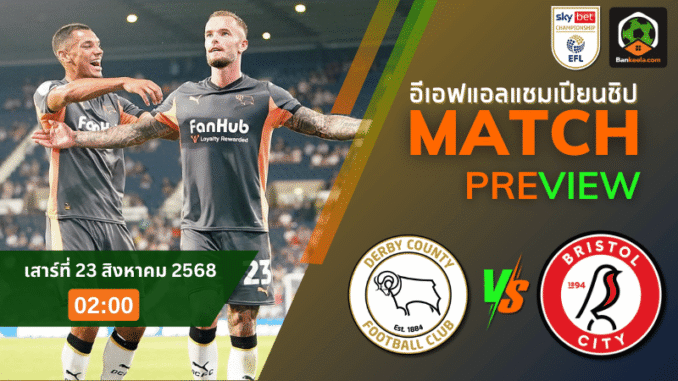 บิ๊กแมตช์ลีกแชมเปียนชิพคืนวันเสาร์ที่ 23 สิงหาคม 2568 เวลา 02.00 น. แฟนบอลต้องจับตาไปที่ ดาร์บี้ เค้าท์ตี้ เปิดรังไพรด์ ปาร์ค สเตเดี้ยม รับการมาเยือนของทีมฟอร์มแรงอย่าง บริสตอล ซิตี้ เกมนี้เรตเปิดออกมาที่เสมอ แม้ทีมเยือนจะทำผลงานดีต่อเนื่อง แต่การมาเยือนถิ่นที่ขึ้นชื่อเรื่องความดุดันยามเล่นในบ้านก็ไม่ง่าย ศึกนี้จึงถูกบรรจุไว้ใน ตารางบอลวันนี้ แบบคู่ที่คอบอลห้ามพลาดเด็ดขาด