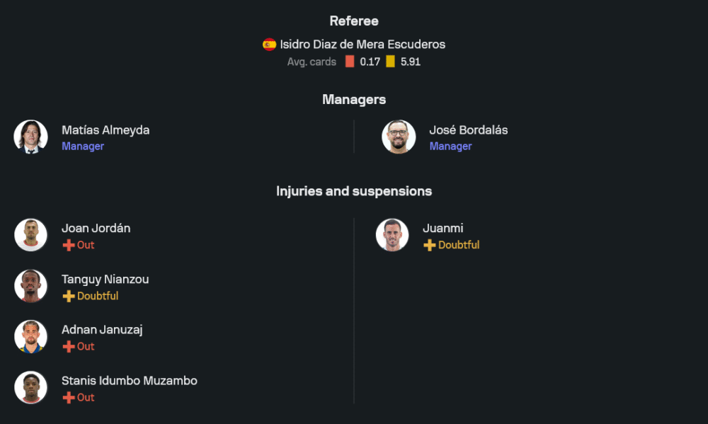 ของกุนซือ มาติอัส อัลเมด้า ยังเจอปัญหาตัวเจ็บเพียบ ไม่ว่าจะเป็น โฆอัน จอร์ดาน, อัดนาน ยานาซาย, สตานิส อิดุมโบ และ ต็องกีย์ นิอองซู ที่ยังไม่ฟิตเต็มร้อย แต่ยังดีที่มีตัวหลักพร้อมประจำการทั้ง เนมานย่า กูเดลย์, ลูเซียง อากูเม่ และ โดดี้ ลูเกบากิโอ ในแผน 4-2-3-1 ส่วนหน้าเป้ายังฝากความหวังไว้กับ อากอร์ อดัม ที่พร้อมจบสกอร์