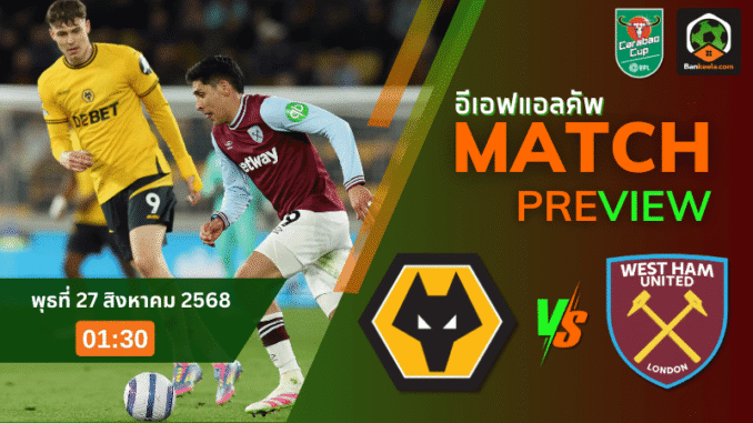 ศึกคาราบาวคัพเดือด! วูล์ฟส์ เปิดบ้านวัดคม เวสต์แฮม เกมชี้ชะตาฟอร์มทีม