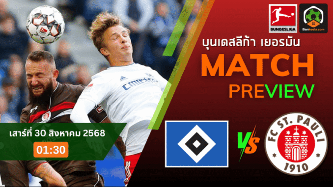 ศึก บุนเดสลีกา เยอรมัน ค่ำคืนวันเสาร์ที่ 30 สิงหาคม 2568 เวลา 01:30 น. ที่สนาม โฟล์คสปาร์คสตาดิโอน จะเป็นเกมดาร์บี้แมตช์สุดเดือดแห่งเมืองท่าระหว่าง ฮัมบูร์ก ทีมอันดับ 11 เปิดบ้านต้อนรับการมาเยือนของ ซังต์ เพาลี ทีมอันดับ 9 โดยบ่อนเปิดราคาให้เจ้าถิ่นต่อ ปป. ถือเป็นคู่ใหญ่ใน ตารางบอลวันนี้ ที่แฟนบอลห้ามพลาดด้วยประการทั้งปวง เพราะเกมนี้คือศึกศักดิ์ศรีมากกว่าการชิงสามแต้มธรรมดา
