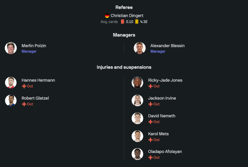 ภายใต้การทำทีมของ อเล็กซานเดอร์ เบลสซิน ออกสตาร์ทได้ร้อนแรงไม่แพ้กัน หลังเปิดบ้านเสมอดอร์ทมุนด์สุดมัน 3-3 แสดงให้เห็นว่าพวกเขาสู้กับทีมใหญ่ได้สบาย ความพร้อมแม้มีแข้งเจ็บเพียบทั้ง แจ็คสัน เออร์ไวน์, ริกกี้-เจด โจนส์ และ เดวิด เนเมธ แต่แกนหลักยังฟูลทีม โดยมี ดาเนล ซินานี่ เพลย์เมกเกอร์หมายเลข 10 ที่เกมล่าสุดยิง 1 ประตู คอยเชื่อมแดนกลางกับคู่กองหน้า อันเดรียส อุนตงฌี และ มาติอัส เปเรย์ร่า ลาเก้ ที่พร้อมไล่ล่าตาข่ายต่อเนื่อง