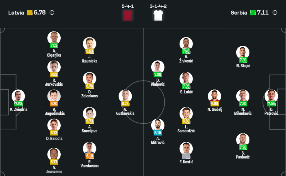 กุนซือ ดราแกน สตอยโควิช ขนขุมกำลังชุดใหญ่ลงสนาม แม้จะไม่มี วานยา มิลินโควิช-ซาวิช นายทวารที่ถอนตัว แต่ยังมี จอร์จี้ เปโตรวิช มือกาวจากบอร์นมัธพร้อมลงเฝ้าเสา แดนกลางนำโดย เนมานย่า กูเดลย์, ซาซ่า ลูกิช และ ลาซาร์ ซามาร์ดซิช ส่วนคู่หอกตัวอันตรายอย่าง ดูซาน วลาโฮวิช และ อเล็กซานดาร์ มิโตรวิช พร้อมลงล่าตาข่ายเต็มสูบในระบบ 3-1-4-2
