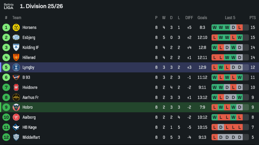 ศึกตารางบนเวที เดนมาร์ก ดิวิชั่น 1 คืนวันศุกร์ที่ 12 กันยายน 2568 เวลาเที่ยงคืนตรง ตามเวลาในบ้านเรา คอบอลต้องไม่พลาด เพราะเกมที่สนาม ดีเอส อารีน่า จะเป็นการเผชิญหน้ากันระหว่าง โฮโบร ทีมอันดับ 9 ที่กำลังพยายามเร่งเก็บแต้มเพื่อหนีโซนท้ายตาราง กับ ลิงบี้ ทีมอันดับ 5 ที่ยังคงหายใจรดต้นคอทีมหัวตาราง และต้องการ 3 คะแนนเพื่อตามเกาะกลุ่มจ่าฝูงให้เหนียวแน่น ราคาบอลเปิดมาที่ ลิงบี้ ต่อ 0.5 ถือว่าเป็นเรตที่น่าจับตามองสุด ๆ สำหรับแฟนบอลที่กำลังส่อง ตารางบอลวันนี้