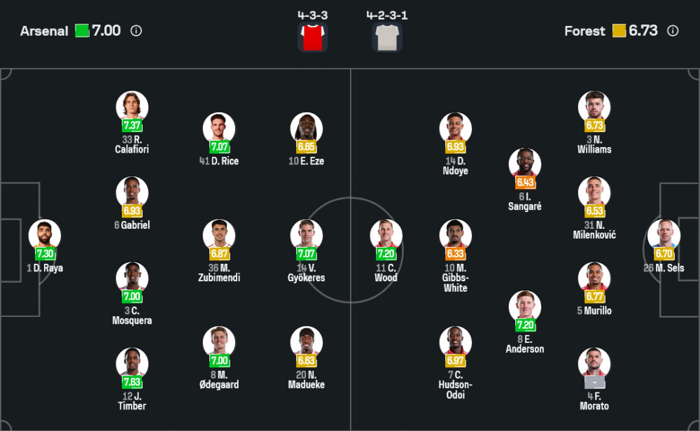 ภาพรวมความพร้อมและโมเมนตัมชี้ไปทางเจ้าถิ่น อาร์เซนอล มีระบบการเล่นที่ลงตัวกว่า ต่อบอลไหลลื่นกว่า และคอนโทรลอารมณ์เกมได้ดีกว่า จุดที่ต้องเน้นคือการรีดคมของ โยเคเรส ในกรอบเขตโทษ และการประสานกับ เอเซ่–มาดูเอเก้ ให้เร็วเพื่อเจาะบล็อกต่ำของฟอเรสต์ หากได้ประตูแรกเร็วมีโอกาสไหล ขณะเดียวกัน ฟอเรสต์ภายใต้ ปอสเตโคกลู จะไม่ถอยลึกอย่างเดียว การบิลด์อัพจากหลังสู่หน้าจะเสี่ยงมากเมื่อเจอเพรสซิ่งของปืนใหญ่ แดนกลาง ซ็องกาเร่–แอนเดอร์สัน ต้องไม่เสียบอลง่าย มิเช่นนั้นจะโดนสวนเป็นชุด จากมุมมองเชิง วิเคราะห์บอล เกมนี้จุดชี้ขาดคือการดวลพื้นที่ครึ่งช่อง (half-space) ระหว่างแบ็ก–เซ็นเตอร์ของฟอเรสต์กับการหุบเข้าในของตัวรุกอาร์เซนอล ถ้าเจ้าถิ่นจับจังหวะเข้าทำได้อย่างที่ซ้อมไว้ น้ำหนักจะเอนเข้าหาผลชนะค่อนข้างชัด