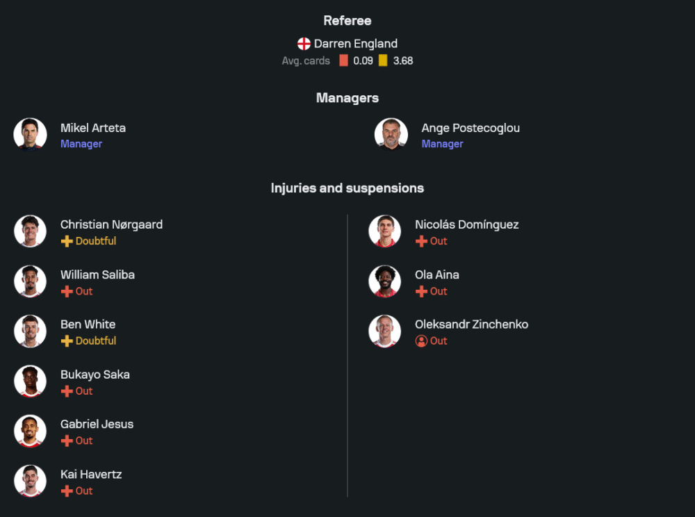เปลี่ยนยุคใหม่ภายใต้ อังเก้ ปอสเตโคกลู นายใหญ่สายเกมบุก แต่การเริ่มงานไม่ง่าย เพราะ นิโกลาส โดมิงเกวซ ยังไม่พร้อม ส่วน โอล่า ไอน่า เจ็บ และที่น่าจับตาคือ โอเล็กซานเดอร์ ซินเชนโก้ หมดสิทธิ์มีเอี่ยวในเกมนี้ โครงสร้างทีมยังวาง 4-2-3-1 มัตซ์ เซลส์ เฝ้าเสา แผงหลังขวา–ซ้ายเป็น นีโก้ วิลเลียมส์, นิโคล่า มิเลนโควิช, มูริลโล่ และ ฟรานซิสโก้ โมราโต้ คู่กลาง อิบราฮิม ซ็องกาเร่ ยืนกับ เอลเลียต แอนเดอร์สัน วางมิดฟิลด์ตัวรุกสามคน ดาน เอ็นดอย ยืนขวา คัลลั่ม ฮัดสัน-โอดอย ซ้าย ตรงกลางเป็นมันสมอง มอร์แกน กิ๊บบ์ส-ไวท์ ปั้นบอลให้ คริส วู้ด เป็นทีเด็ดจบสกอร์