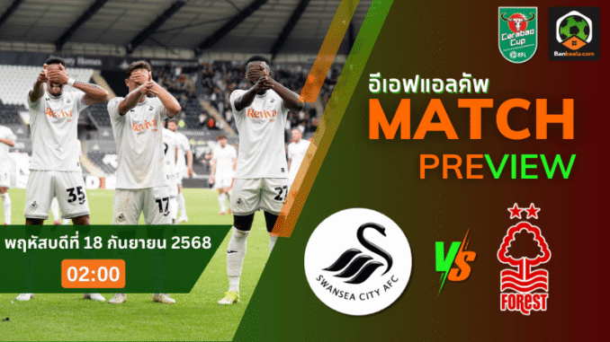 ค่ำคืนวันพฤหัสบดีที่ 18 กันยายน 2568 เวลา 02.00 น. แฟนบอลจะได้ชมเกมมันส์ ๆ ของ อีเอฟแอลคัพ รอบนี้ เมื่อ “หงส์ขาว” สวอนซี ซิตี้ ตัวแทนจากแชมเปี้ยนชิพ เตรียมเปิดรัง สวอนซี.คอม สเตเดี้ยม ต้อนรับการมาเยือนของ “เจ้าป่า” น็อตติ้งแฮม ฟอเรสต์ ทีมจากพรีเมียร์ลีก เกมนี้ถูกจับตามองไม่เพียงเพราะความต่างของลีก แต่ยังเพราะเรต ราคาบอล ที่ฟอเรสต์บุกมาต่อ 1.0 (-5) สะท้อนว่าตลาดยังเชื่อมั่นในคุณภาพของทีมเยือน อย่างไรก็ตาม ด้วยผลงานของสวอนซีที่แข็งแกร่งในรัง และสภาพปัจจุบันของฟอเรสต์ที่ยังไม่นิ่ง เกมนี้จึงเป็นหนึ่งในคู่ที่แฟนบอลต้องจดใน ตารางบอลวันนี้ แบบห้ามพลาด