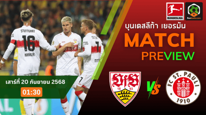 คืนวันเสาร์ที่ 20 กันยายน 2568 เวลา 01:30 น. แฟนบอล บุนเดสลีกา เยอรมัน เตรียมมันส์กันเต็มอารมณ์ เมื่อ สตุ๊ตการ์ต ทีมอันดับ 5 จะเปิดรัง เอ็มเอชพี อารีน่า ต้อนรับการมาเยือนของ ซังค์ เพาลี ทีมอันดับ 7 เกมนี้เจ้าบ้านถูกยกเป็นต่อเล็กน้อยโดยราคาบอลวันนี้เปิดมา สตุ๊ตการ์ต ต่อ 0.75 ซึ่งถือว่าเป็นเรตที่น่าจับตา เพราะฟอร์มของทั้งสองทีมต่างมีจุดแข็งจุดอ่อนให้เห็นชัดเจนในช่วงออกสตาร์ทฤดูกาลใหม่ การต่อสู้ครั้งนี้จึงเป็นอีกหนึ่งเกมใน ตารางบอลวันนี้ ที่คอบอลไม่ควรพลาดเด็ดขาด