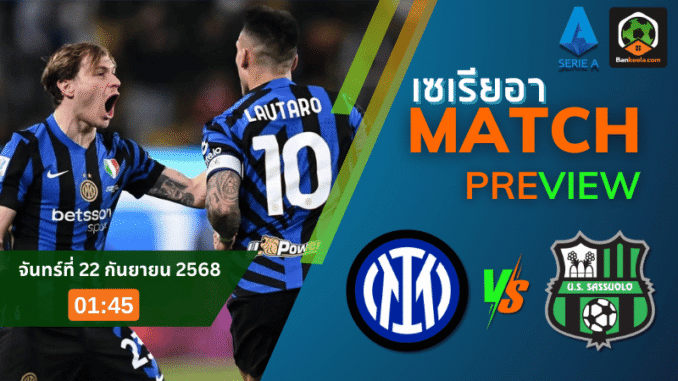 งูใหญ่พร้อมล่าคืนศักดิ์ศรี! อินเตอร์ มิลาน เปิดซานซิโอรับซัสซูโอโล่ เกมเดือดลูกหนังอิตาลี