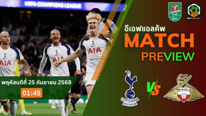 ศึก คาราบาวคัพ คืนวันพฤหัสบดีที่ 25 กันยายน 2568 เวลา 01:45 น. ณ ท็อตแน่ม ฮ็อตสเปอร์ สเตเดี้ยม แฟนบอลเตรียมรับความมันส์เต็มสูบเมื่อ ท็อตแน่ม ฮ็อทสเปอร์ ทีมยักษ์ใหญ่จากพรีเมียร์ลีก เปิดบ้านรับการมาเยือนของ ดอนคาสเตอร์ โรเวอร์ส ทีมจากลีกวัน เกมนี้เรตเปิดมาให้ “ไก่เดือยทอง” ต่อถึง 2 ลูก เหมาะสำหรับการลุ้นเดิมพันตาม ตารางบอลวันนี้