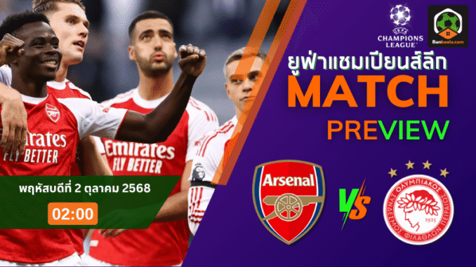 ศึกใหญ่ค่ำคืนนี้ในรายการ ยูฟ่า แชมเปียนส์ลีก แฟนบอลห้ามพลาด เมื่อ อาร์เซน่อล ขวัญใจแห่งพรีเมียร์ลีก เปิดรัง เอมิเรตส์ สเตเดียม ต้อนรับการมาเยือนของยักษ์ใหญ่จากกรีซอย่าง โอลิมเปียกอส แข่งขันในคืนวันพฤหัสบดีที่ 2 ตุลาคม 2568 เวลา 02:00 น. ตามโปรแกรมจาก ตารางบอลวันนี้ โดยราคาบอลล่าสุดเปิดมาที่ อาร์เซน่อล ต่อ 2.0 ซึ่งถือว่าเจ้าถิ่นเหนือกว่าชัดเจนทั้งฟอร์มและขุมกำลัง แฟนบอลเตรียมระเบิดความมันส์ในค่ำคืนนี้แน่นอน