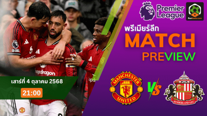 พรีเมียร์ลีก อังกฤษ ค่ำคืนเสาร์นี้ไฟส่องสว่างเหนือ โอลด์ แทร็ฟฟอร์ด เมื่อ แมนเชสเตอร์ ยูไนเต็ด ทีมอันดับ 14 เปิดบ้านรับมือ ซันเดอร์แลนด์ อันดับ 5 เวลา 21.00 น. ตามเวลาประเทศไทย คู่เตะดุเดือดที่แฟนบอลต้องจดไว้ใน ตารางบอลวันนี้ เพราะมีเดิมพันทั้งศักดิ์ศรีและคะแนนสำคัญของทั้งสองฝั่ง อัตราต่อรองเปิดมาให้ผีแดงเป็นต่อ หนึ่งลูกถ้วน สะท้อนความเชื่อมือในพลังรุกเจ้าบ้าน แต่ฝั่งอาคันตุกะกำลังมั่นใจและขุมกำลังกำลังไหลลื่น งานนี้ไม่ใช่หนังม้วนเดียวจบแน่นอน