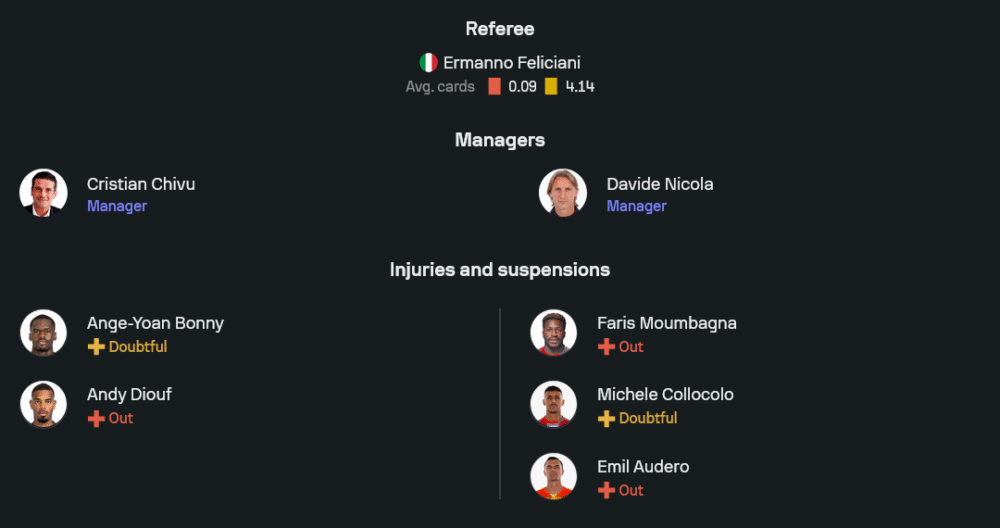 เครโมเนเซ่ของดาวิเด้ นิโคลา มาด้วยทรงเหนียวแน่น ไม่แพ้ใครในลีกสามเกมหลัง แม้เจ็บหลายตำแหน่งอย่าง เอมิล ออเดโร่ ผู้รักษาประตู, ฟารีส มุมบานญ่า และ มิเคเล่ คอลโลโคโล่ แต่โครงสร้างแผนยังชัดเจน เซ็ตอัพหลังสามใช้ มัตเตโอ เบียงเค็ตติ, เฟเดริโก้ บาสชิร็อตโต้ และ จูเซ็ปเป เปซเซลลา วิงแบ็กซ้ายขวาคือ อเลสซิโอ แซร์บิน กับ ฟิลิปโป แตร์รัชชาโน่ กลางสามวาง วาร์เรน บอนโด, อัลแบร์โต้ กราสซี และ มาร์ติน ปาเยโร่ รอคุมจังหวะ ส่วนคู่หน้าเลือกใช้ ฟรังโก้ บอนนัซโซลี จับคู่ เดวิด จอห์นสัน ไล่ชนแนวรับงูใหญ่แบบไม่ให้ตั้งตัว