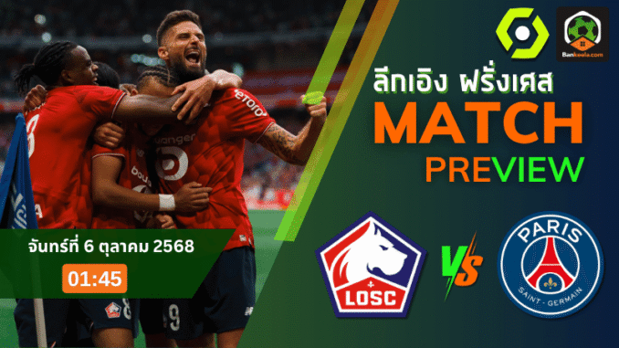 ศึก ลีกเอิง ฝรั่งเศส คืนวันจันทร์ที่ 6 ตุลาคม 2568 เวลา 01:45 น. ที่สต๊าด ปิแอร์ โมรัว เกมใหญ่ระหว่าง ลีลล์ ทีมอันดับกลางตารางที่ต้องการเรียกศรัทธา เปิดบ้านดวลแชมป์เก่า ปารีส แซงต์-แชร์กแมง ที่กำลังล่าแต้มรักษาบัลลังก์จ่าฝูง ราคาบอลวันนี้ เปิดที่ทีมเยือนต่อครึ่งลูก ถือว่าไม่ง่ายสำหรับเปแอสเชที่ฟอร์มนอกบ้านยังไม่นิ่ง ใครกำลังเปิด ตารางบอลวันนี้ ต้องวงกลมคู่นี้ไว้ เพราะมันคือเกมที่อัดแน่นด้วยแท็กติกและแรงปะทะสุดเข้มข้น