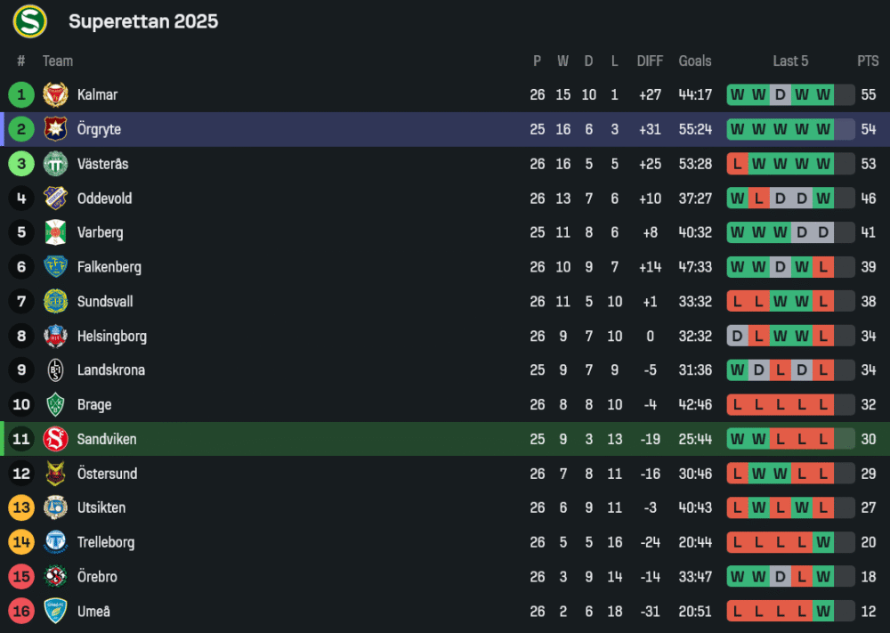 การแข่งขัน ซูเปอร์เรตเท่น สวีเดน คืนวันอังคารที่ 7 ตุลาคม 2568 เวลา 00.00 น. สนาม เยิร์นวัลเล่น จะเป็นการปะทะกันระหว่าง ซานด์วิเค่นส์ ทีมอันดับ 11 ที่กำลังดิ้นรนหนีโซนล่างของตาราง พบกับ ออร์กรีเต้ จ่าฝูงที่กำลังฟอร์มแรงสุดขีด ราคาบอลวันนี้เปิดมาให้ออร์กรีเต้บุกมาต่อ 0.75 ซึ่งบอกเลยว่าเป็นเกมที่แฟนบอลห้ามกะพริบตา เพราะนี่คือหนึ่งในศึกที่อาจเปลี่ยนโฉมหน้าของ ตารางบอลวันนี้