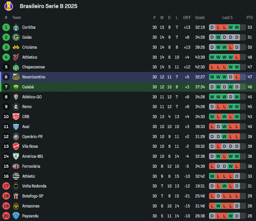 คืนวันพฤหัสบดีที่ 9 ตุลาคม 2568 เวลา 05:00 น. ศึก คัมปิโอนาโต บราซิเลียโร ซีรีบี ระเบิดความมันส์ที่สนาม อารีน่า พานตานัล เมื่อ คูยาบา ทีมอันดับ 7 เปิดบ้านรับมือ เกรมิโอ โนโวริซอนติโน่ อันดับ 6 เกมนี้มีเดิมพันสูงมาก เพราะช่องว่างคะแนนในโซนลุ้นเลื่อนชั้นเบียดกันแน่น ทุกแต้มมีค่ามหาศาลต่อเส้นทางปลายฤดูกาล กระแสหน้าเสื่อเปิดมาที่คูยาบา “ต่อ 0.25” ตามฟอร์มในรังที่โหดหินและสถิติชนะถี่ยิบช่วงหลัง แฟนบอลที่ไล่เช็ก ตารางบอลวันนี้ จะเห็นเลยว่านี่คือคู่ที่ทั้งเข้มข้นทั้งหอมหวานต่อการลุ้นหน้าเสื่อ ใครรักบอลเขี้ยวๆ เน้นวินัยเกมรับกับจังหวะเข้าทำคมๆ ต้องจองหน้าจอ