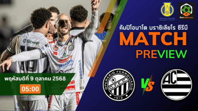 คืนวันพฤหัสบดีที่ 9 ตุลาคม 2568 เวลา 05:00 น. ที่เอสตาดิโอ แกร์มาโน่ ครูแกร์ แฟนบอลเตรียมระเบิดความมันส์กับศึก คัมปิโอนาโต บราซิเลียโร ซีรีบี คู่ที่ดุเดือดไม่แพ้ใคร เมื่อ โอเปราริโอ แฟร์โรวิอาริโอ พีอาร์ ทีมอันดับกลางตาราง เปิดบ้านรับมือ แอธเลติก เอ็มจี ที่กำลังต้องการแต้มเพื่อขยับหนีโซนล่าง เกมนี้ราคาไหลล่าสุดให้เจ้าถิ่น “ต่อ 0.5” สะท้อนความแข็งแกร่งในถิ่นที่พวกเขามักปล่อยของให้เห็นต่อเนื่อง ใครที่กำลังไล่เช็ก ตารางบอลวันนี้ จะรู้เลยว่าคู่นี้มีทุกอารมณ์ทั้งแท็กติกเข้ม ฟาดฟันกลางสนาม และจังหวะสังหารคมกริบให้ลุ้นยาวตลอด 90 นาที