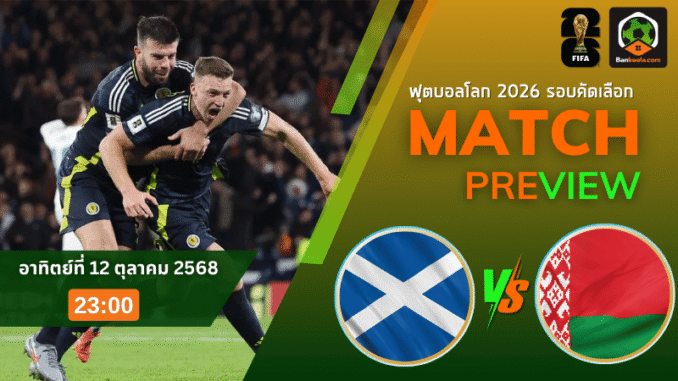 เกมรอบคัดเลือกฟุตบอลโลก 2026 โซนยุโรป กลุ่มซี คืนวันอาทิตย์ที่ 12 ตุลาคม 2568 เวลา 23:00 น. ตามเวลาประเทศไทย แฟนบอลต้องไม่พลาดการเจอกันของ สกอตแลนด์ ที่กำลังมั่นใจสุดขีด เปิดรัง แฮมพ์เด้น ปาร์ค รับการมาเยือนของ เบลารุส ทีมที่ฟอร์มช่วงหลังเป๋อย่างหนัก โดยเรตเปิดมาที่ สกอตแลนด์ ต่อ 2.25 ถือว่าเป็นเกมที่เจ้าบ้านได้เปรียบทุกด้าน และคู่นี้ยังถูกจับตาในลิสต์ ตารางบอลวันนี้ อย่างมาก