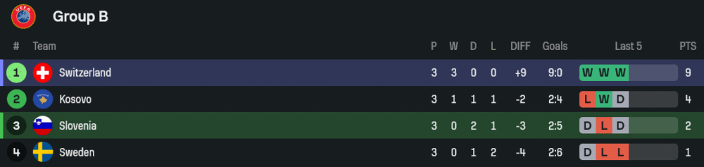 หากมองตาม วิเคราะห์บอล และสถานการณ์ในกลุ่ม B ตอนนี้ เห็นได้ชัดว่า สวิตเซอร์แลนด์ อยู่ในช่วงพีคสุด ๆ ทั้งฟอร์ม เกมรับที่เหนียวแน่น และความมั่นใจจากการไม่เสียประตูเลยในรอบคัดเลือก ส่วนสโลวีเนียเองแม้จะเล่นในบ้าน แต่แรงกดดันจากผลงานที่ผ่านมาและเกมรุกที่ยังหืดจับ อาจทำให้พวกเขาเจองานหนักแบบสุด ๆ ในการหาช่องเจาะแนวรับของทีมเยือน