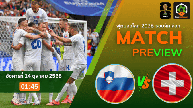 ศึกฟุตบอลโลก รอบคัดเลือก โซนยุโรป กลุ่ม B คืนนี้เตรียมระเบิดความมันแบบดุเดือด เมื่อ สโลวีเนีย เตรียมเปิดบ้านต้อนรับการมาเยือนของ สวิตเซอร์แลนด์ ที่ฟอร์มร้อนแรงสุดขีด โดยการแข่งขันจะมีขึ้นในคืนวันอังคารที่ 14 ตุลาคม 2568 เวลา 01:45 น. แฟนบอลสายเชียร์ สายเดิมพัน เตรียมล็อกจอให้ดี เพราะนี่อาจเป็นอีกหนึ่งแมตช์ที่พลิกสมดุลของกลุ่มได้เลยทีเดียว และแน่นอน เกมนี้ถูกจับจ้องบนหน้า ตารางบอลวันนี้ แบบไม่มีพลาด