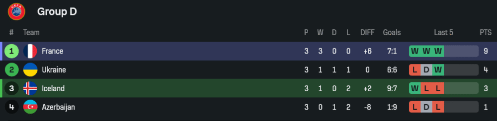 ฝรั่งเศสฟอร์มสุดโหด! ชนะรวด 5 นัดหลัง ยิงรวม 17 ประตู เสียเพียง 1 ลูก การที่ทีมขาดบิ๊กเนมไม่ได้ทำให้เกมรุกลดความดุดันลงแต่อย่างใด เพราะนักเตะชุดสำรองหลายคนโชว์ฟอร์มร้อนแรงได้ดีไม่แพ้ตัวหลัก เกมล่าสุดเปิดบ้านถล่มอาเซอร์ไบจาน 3-0 โดยเฉพาะเกมรับที่เล่นกันอย่างมีวินัย ความมั่นใจของทีมจึงสูงลิบ