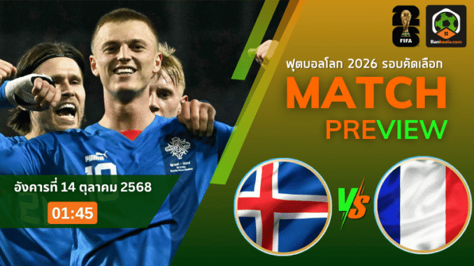 ศึกฟุตบอลโลก 2026 รอบคัดเลือก โซนยุโรป กลุ่มดี คืนวันอังคารที่ 14 ตุลาคม 2568 เวลา 01:45 น. ตามเวลาประเทศไทย แฟนบอลห้ามพลาดศึกสุดเดือดเมื่อ ไอซ์แลนด์ เตรียมเปิดรังเลาการ์ดัลส์วอลลูร์ ต้อนรับการมาเยือนของ ฝรั่งเศส ทีมจ่าฝูงที่กำลังฟอร์มแรงสุดขีด เกมนี้มีความหมายสำคัญต่ออันดับในกลุ่ม เพราะฝรั่งเศสต้องการยืดสถิติไร้พ่าย ขณะที่ไอซ์แลนด์เองก็หวังสร้างเซอร์ไพรส์ในถิ่นตัวเองเพื่อเรียกความมั่นใจกลับคืน ราคาบอลเปิดมาให้ทีมเยือนต่อ 2 ลูก ถือว่าแรงสมชื่อทีมแชมป์โลก 2 สมัย ใครที่กำลังเล็งคู่เด็ดคืนนี้ บอกเลยว่าคู่นี้คือหนึ่งในไฮไลต์ของ ตารางบอลวันนี้