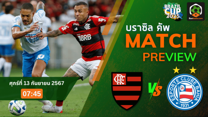 การแข่งขัน ฟุตบอลบราซิล คัพ 2024 นัดที่สองระหว่าง ฟลาเมงโก ที่จะเปิดบ้านต้อนรับการมาเยือนของ บาเฮีย บีเอ ในวันที่ 13 กันยายน 2567 เวลา 07.45 น. เป็นเกมที่ทั้งสองทีมต้องสู้เต็มที่เพื่อชิงตำแหน่งผ่านเข้าสู่รอบถัดไป แม้ว่า ฟลาเมงโก จะได้เปรียบจากชัยชนะในนัดแรกที่บุกไปชนะบาเฮีย 1-0 แต่การเล่นในรอบน็อกเอาต์ย่อมมีความกดดันมากมาย และ บาเฮีย จะต้องทำทุกวิถีทางเพื่อพลิกสถานการณ์ในนัดนี้