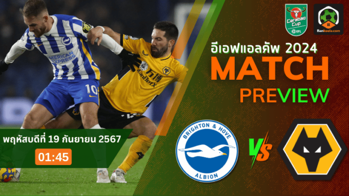 การแข่งขันฟุตบอล อีเอฟแอลคัพ 2024 รอบที่กำลังจะเกิดขึ้นระหว่าง ไบรท์ตัน โฮฟ อัลเบี้ยน และ วูล์ฟแฮมป์ตัน ในวันที่ 19 กันยายน 2567 เวลา 01:45 น. เป็นอีกหนึ่งเกมที่แฟนบอลต่างรอคอย ด้วยความสำคัญของการชิงชัยในถ้วยนี้ สองทีมนี้ต้องการชัยชนะเพื่อผ่านเข้าสู่รอบต่อไปของการแข่งขัน โดย ไบรท์ตัน โฮฟ อัลเบี้ยน ที่ฟอร์มแรงในลีกจะต้องเผชิญกับความท้าทายจาก วูล์ฟแฮมป์ตัน ที่ฟอร์มยังไม่ค่อยดีในช่วงหลัง แต่ยังคงมีความสามารถที่อาจจะทำให้เกมนี้กลายเป็นเกมที่ดุเดือด