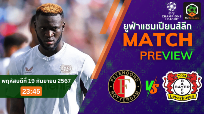 การแข่งขันใน ยูฟ่า แชมเปี้ยนส์ ลีก 2024 กำลังจะเกิดขึ้นระหว่างสองทีมแกร่งจากต่างลีก เมื่อ เฟเยนูร์ด ร็อตเธอร์ดัม เปิดบ้านรับการมาเยือนของ ไบเออร์ เลเวอร์คูเซิน ทีมดังจาก บุนเดสลีกา เกมนี้จะเริ่มในวันพฤหัสบดีที่ 19 กันยายน 2567 เวลา 23.45 น. แฟนบอลทั้งสองทีมต่างตั้งตารอความมันส์ของเกมนี้อย่างไม่กะพริบตา