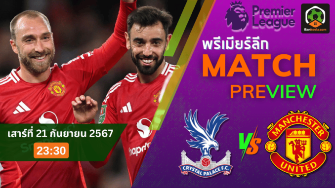 การแข่งขันฟุตบอล พรีเมียร์ลีก 2024 วันเสาร์ที่ 21 กันยายน 2567 เวลา 23.30 น. จะเป็นการพบกันระหว่าง คริสตัล พาเลซ ที่ต้องการแต้มเพื่อปรับฟอร์มการเล่นของทีม และ แมนเชสเตอร์ ยูไนเต็ด ที่กำลังกลับมาทำผลงานได้ดี เกมนี้จึงเป็นศึกสำคัญที่ทั้งสองทีมจะต้องต่อสู้กันอย่างหนักเพื่อเก็บสามแต้มเข้าสู่ทีม