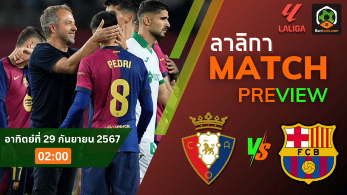 ดูบอลลาลิกา 2024 ถ่ายทอดสด โอซาซูน่า vs บาร์เซโลน่า 28/9/67 – บ้านกีฬา (bankeela1.com)